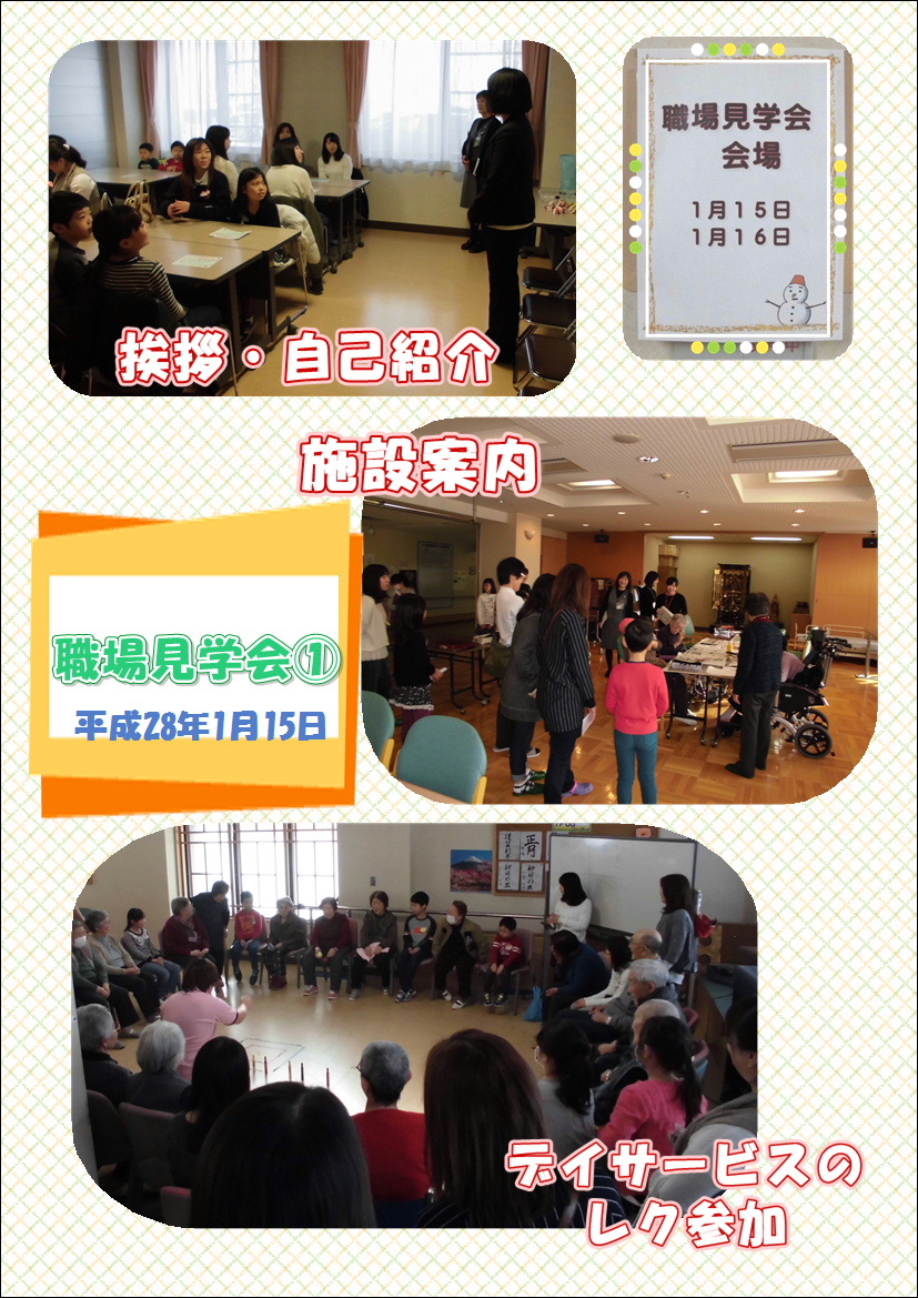 聖芳園では1月15日、16日の2日間、働く親の職場見学会を開催しました。