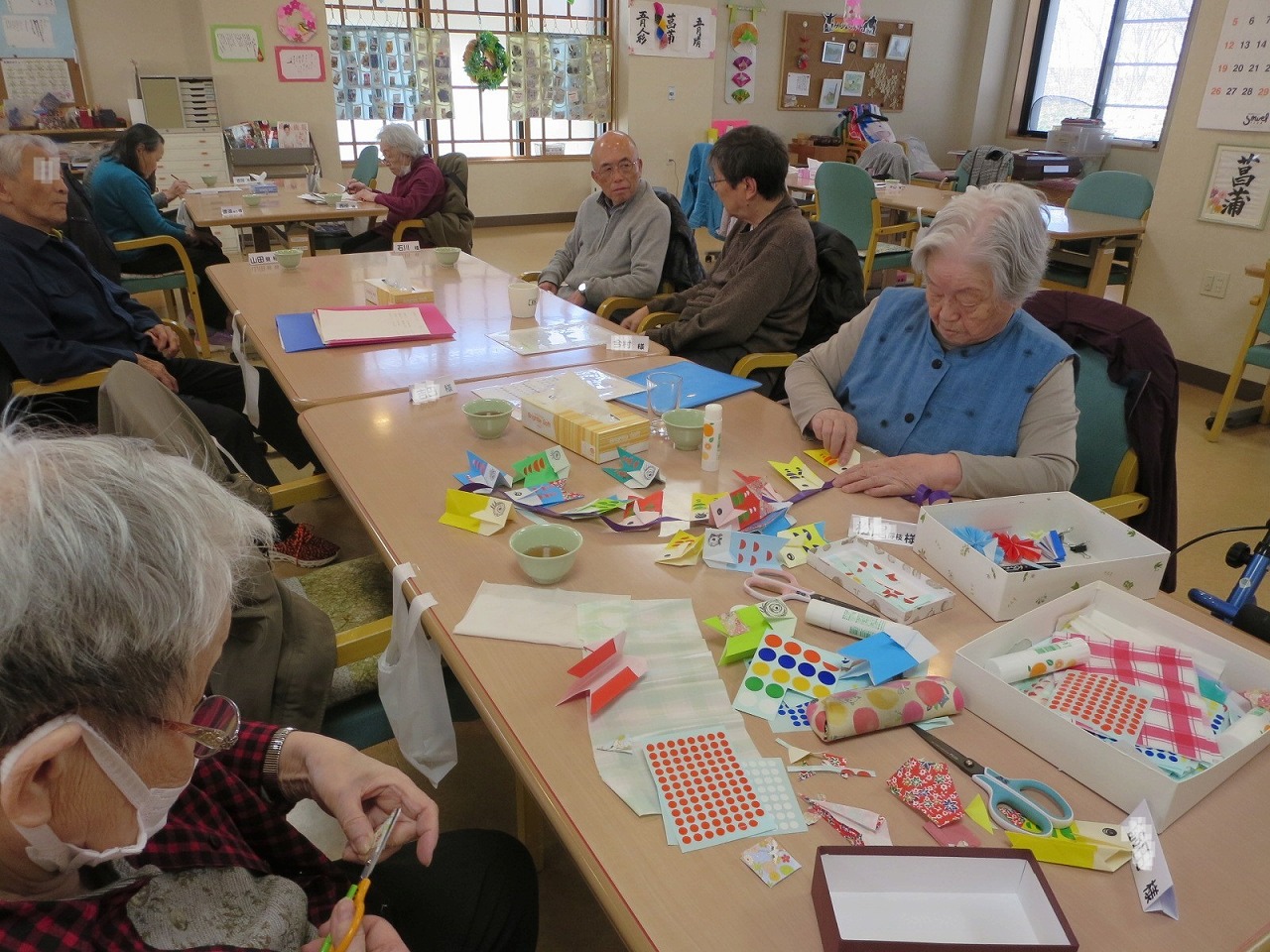 さて、聖芳園デイサービスセンターでは、茶話会カラオケ・節句の飾り作り・あさがお弦作りを行いました