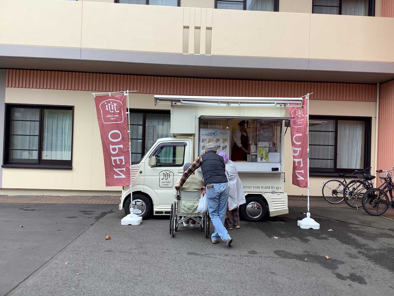 特養入り口前にはキッチンカーが来園